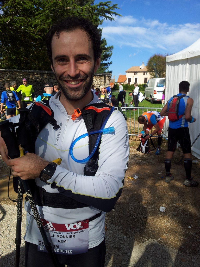 Les gens hurlent et nous félicitent, alors qu'ils ne nous connaissent même pas. C'est ça l'ambiance Trail et Ultra-Trail, je vois Suzie sur le côté qui m'encourage, plus que 10m à faire en compagnie de Bertrand et on passe ensemble le portique d'arrivée très reconnaissable des Templiers.